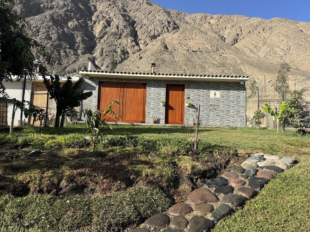 Escape to serenity of the Andes in our modern country retreat, just 30 minutes from Chosica. Nestled at Km 53 of the Carretera Central, our country Home offers you fresh mountain air, sunshine year-round, stargazing, and surroundings full of charm. Wake up to the sounds of nature, the distant train, the cheerful crow of hens and enjoy mountain views from a modern home. Ideal for romantic getaways, family weekends, or personal retreats, this space blends rural calm with modern ease.