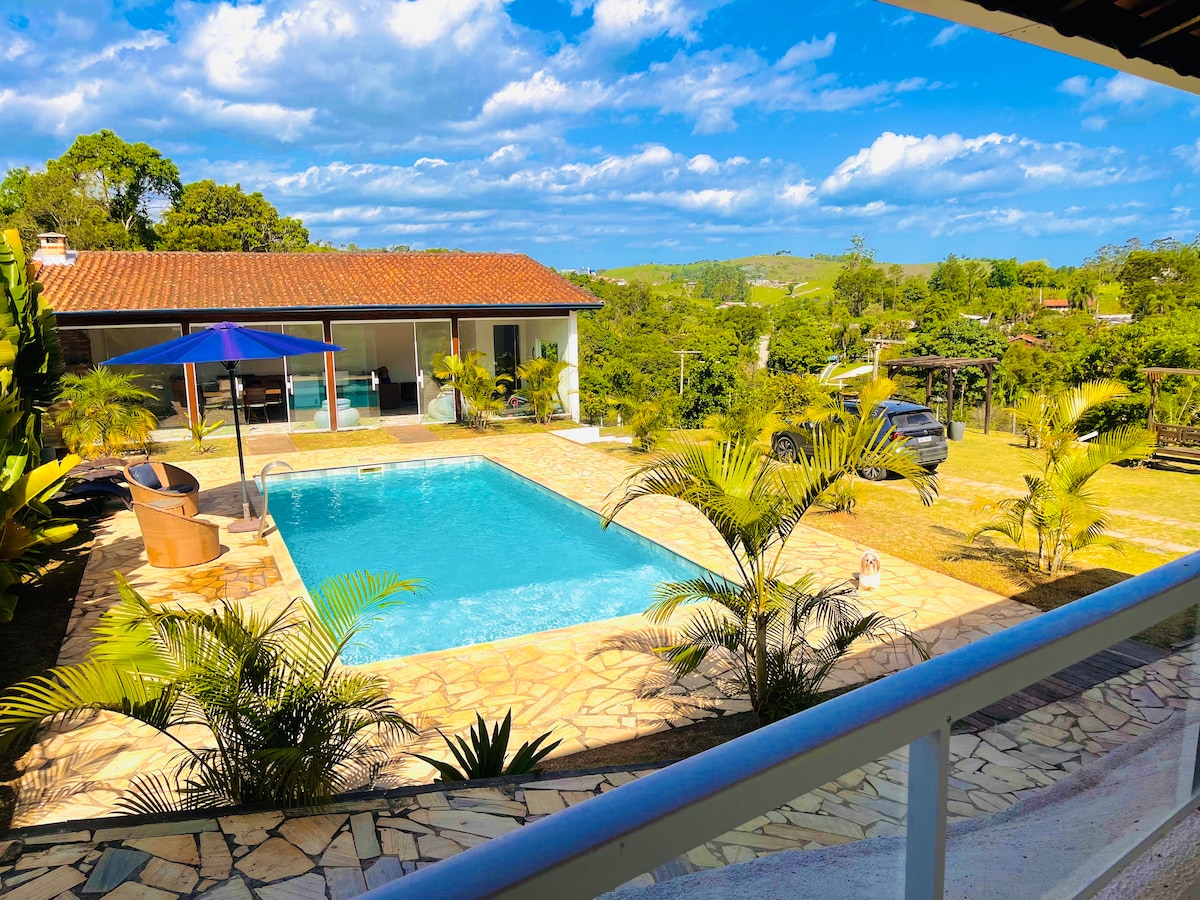 Chácara kinematograafilise panoraamvaatega. See on täielikult renoveeritud ja on valmis, seal on wifi ja kõik kanalid, samuti grill, bassein ja ventilaatorid kõigis tubades. Väga suur rõdu laitmatu muruga majutuskoha territooriumil. Ideaalne lastega peredele, kes soovivad lõõgastuda kauni ja panoraamvaate ees. Meil on talus hooldajaid, kes teevad iga päev muru ja basseini hooldust, et kõik oleks alati imeline!