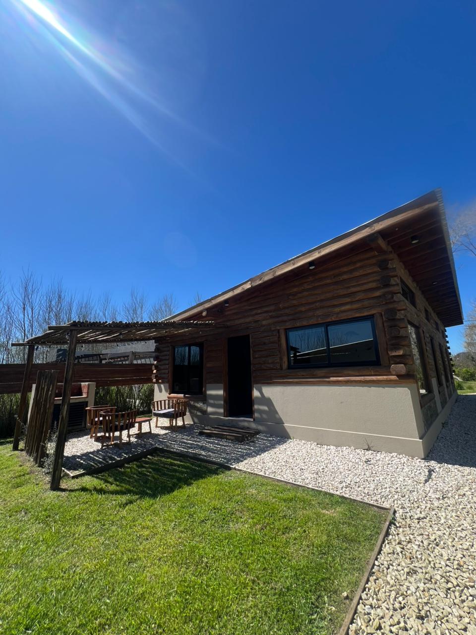 Equipada para 5 personas, 2 habitaciones una con cama doble y otra con 3 camas simples, living y cocina comedor, la cabaña es ideal para una estadía cómoda y simple, priorizando el descanso y la conexión con la naturaleza y el aire libre. Podes disfrutar de un asado en la parrilla privada y techada, también de un fogón portátil en las noches. El estacionamiento es privado. Hay WIFI, ventilación, servicio de blanco y aceptamos mascotas.