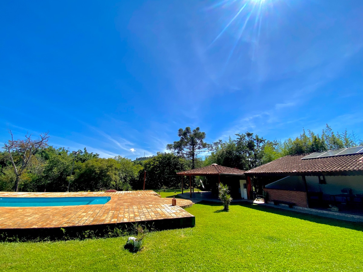 2023. aasta detsembris avastatud Rancho Mirante da Serra ühendab mugavuse, looduse ja keerukuse privilegeeritud asukohas, umbes 6 km kaugusel kesklinnast. Hüdromassaaž kromoteraapiaga, päikesekonditsioneeriga bassein ja põrandatuli on mõned vaatamisväärsused talveks! Konditsioneeriga bassein sõltub ilmastikutingimustest ja termilise katte kasutamisest, mis muudab selle sukeldumiseks nauditavaks. Meie majutuskoht asub mäe tipus, kust avaneb vaade loodusele.