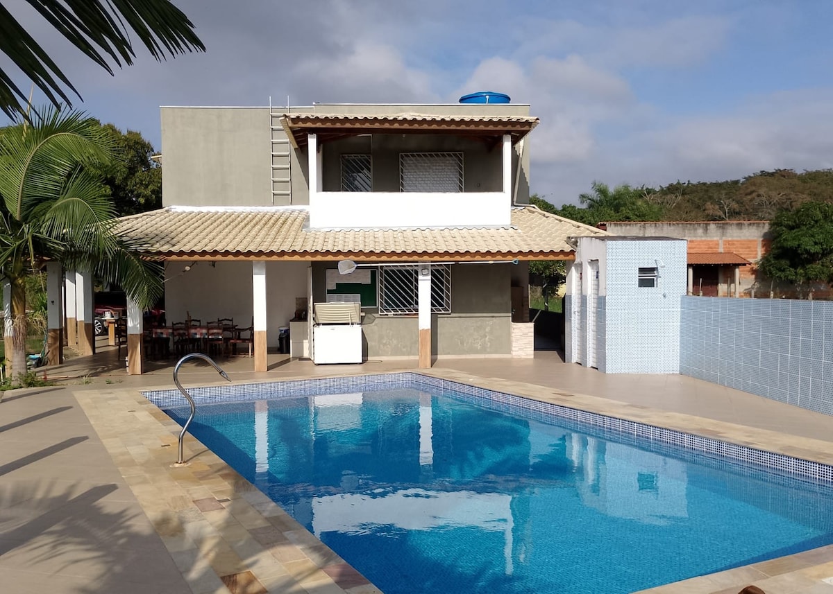 Reconecte-se à natureza neste lugar inesquecível. Paz e tranquilidade não há de faltar Casa de fazenda com piscina, área gourmet com churrasqueira, espreguiçadeira s,pergolado com mesas e bancos,Internet, TVs na maioria dos cômodos, lagos,caique,campo de vôlei de areia, total privacidade sem vizinhos,lugar de total descanso