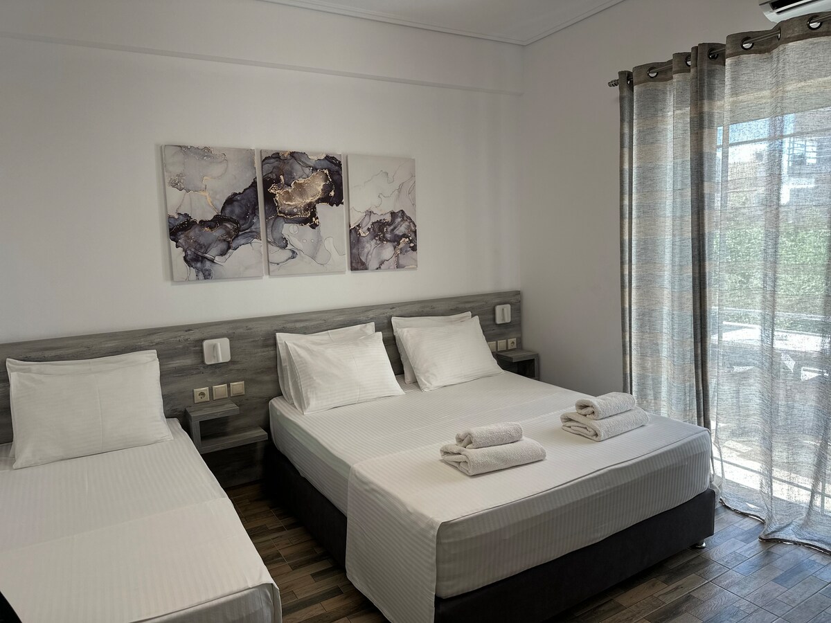 Meie suurde korterisse mahub 7 inimest. On 2 magamistuba,üks magamistuba on kahekordne halb ja teine on kolm ühekohalist voodit.See korter on 2 vannituba, köök ja 3 rõdu.Saad nautida suurepärast vaadet rõdud. Meil on tasuta privaatne parkimine meie villa territooriumil. Kaugus rannast on umbes 950 m. Me tervitame teid!