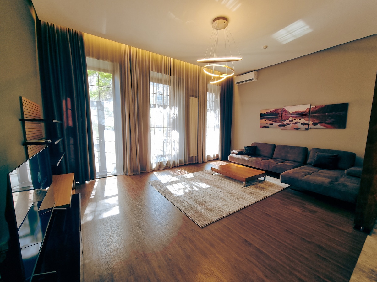 Luksuslik korter mere ääres prestiižses Bakuu linnaosas. Naudi kaunist vaadet rõdult või lõõgastu hubases elutoas. Maja lähedal on palju restorane, poode ja meelelahutust. Korteris on olemas kõik mugavaks viibimiseks vajalik: mugav voodi, kokkupandav diivan, teler, kliimaseade, köök kõigi vajalike vahendite ja seadmetega, vannituba dušiga ja pesumasin. Korteris on tasuta wifi, mis võimaldab sul internetiühendust hoida ja kaugtööd teha.