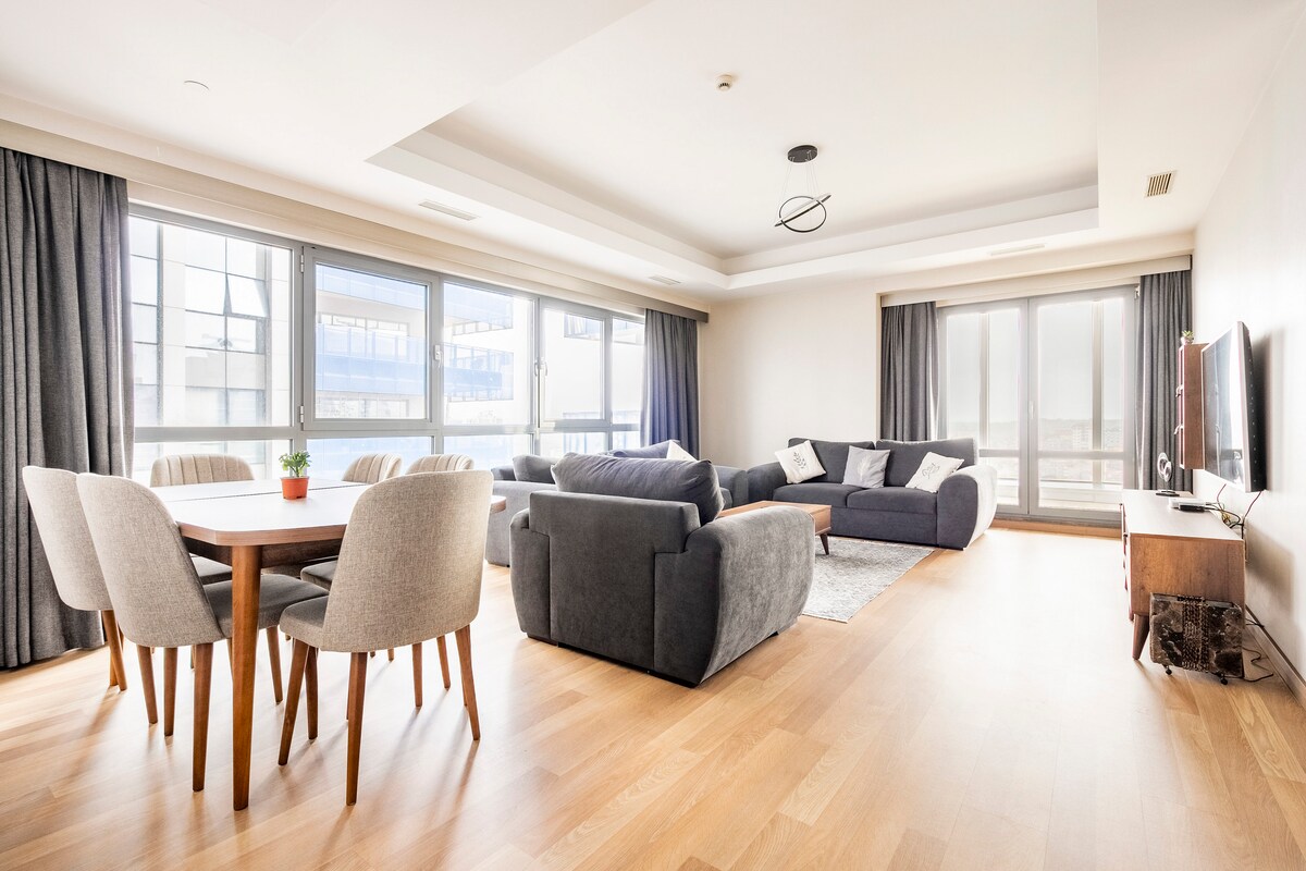 🌟Welcome to this modern and stylish 2-Bedroom apartment located in Sarıyer, within one of Istanbul’s largest shopping centers, Vadistanbul Mall. The apartment offers a spacious living area, a fully equipped kitchen, and access to indoor pool, sauna, fitness center. Residence is also very close to Galatasaray Rams Park Stadium, making it ideal for match days. 🧹 Daily complimentary housekeeping service included for your comfort. ✨ We look forward to hosting you and wish you a pleasant stay!