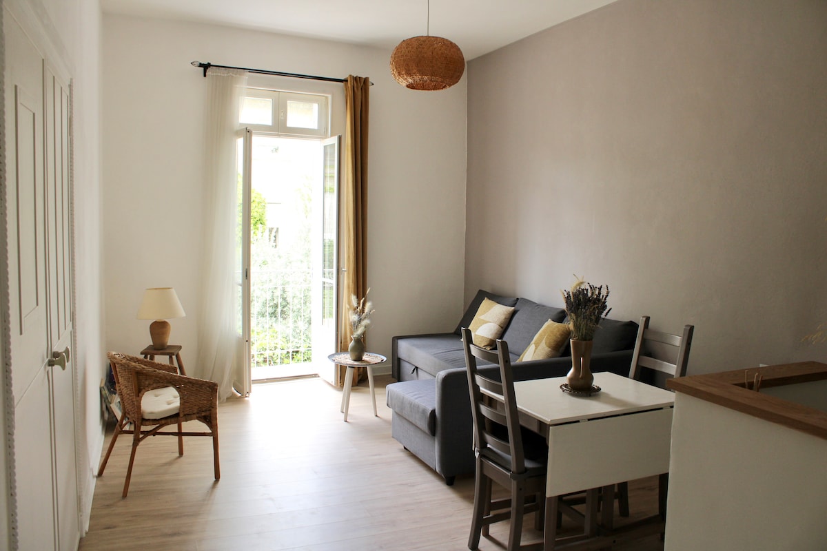 Au coeur historique d'Avignon Quartier Carreterie/place des Carmes/Pasteur Rue très calme en RDC Au pied des théâtres Grand T1bis de 40m2 cocooning spacieux et serein Salon avec canapé Coin chambre avec un lit de 160 (septembre 2024) Cuisine ouverte (Frigo, micro ondes, plaques induction, cafetière, bouilloire ..) Salle d'eau WC Cimatisation réversible Télévision 82 cm Draps et serviettes à disposition Non fumeur Parking des Italiens gratuit à 5 minutes par navette