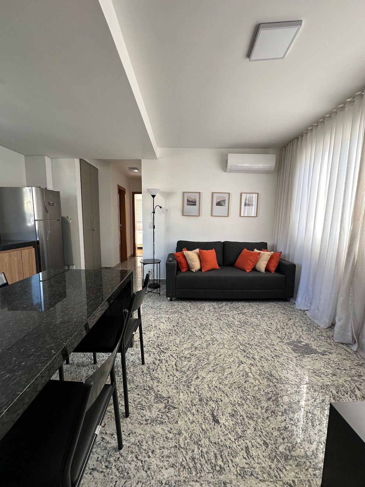 See korter on äsja renoveeritud, kaasaegne, ilus ja hubane. Sviidis on 42-tolline nutiteler, eriti lai kaheinimesevoodi, konditsioneer ja garderoob. Elutoas on televiisor, wifi, diivanvoodi ja graniidist laud töö- ja söögilaud koos Ameerika köögiga, mis on varustatud mitmesuguste söögiriistade, pliidi, mikrolaineahju ja minibaariga. Korterist avaneb vaade Pátio Savassi ja Serra do Currali ostukeskus. See asub Savassi südames, kus on head restoranid, apteegid ja transport.