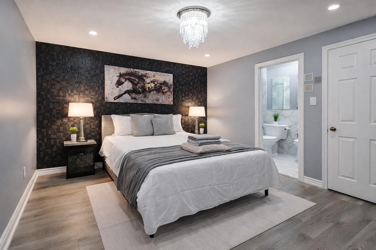 Leia puhkust ja inspiratsiooni meie privaatsest külaliskorterist (ei ole jagatud) Ajaxi rannapiirkonna lähedal, kus õhk on värske ja päevad vaiksemad, Originaalsete kunstiteoste ja peente hooajaliste detailidega kaunistatud sviit meenutab sooja ja hubast galeriid – mugavat kohta lõõgastumiseks, kui pühadetunne aeglaselt kasvab. Astuge välja 7 km pikkusele rannarajale, et nautida rahulikke varajasi talvejalutuskäike ja maalilisi järvevaateid. Ideaalne koht kunstisõpradele, fotoentusiastidele ja loodushuvilistele sel hooajal.