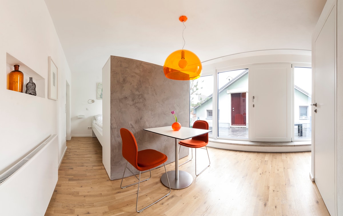 Our nature house consists entirely of natural building materials and uses the synergy effects of radiant heat and solar energy. The untreated wood is constructed according to the system of Bio-Solar-Haus, whereby no paint or other preservatives were processed. The solid wood floors throughout the house are oiled. In addition to natural wood such as stone pine and oak, other natural materials such as natural stone from the region (Jura marble) have been processed. The construction of the Bio-Solar house allows a natural air circulation and thus dispenses with the disadvantages of ventilation systems. There are no convection formed due to a built-ceiling and wall radiant heating.Through the house-in-house system (without vapor barrier), the water vapor can diffuse freely to the outside, causing no condensation and mold. Given the low heating energy demand in the house and the use of solar radiation, no fossil fuels are needed. Solar energy is the main energy source, only in winter can be heated if necessary with the wood stove. Service we are happy to bring you fresh, crispy and wholesome bread rolls from a BIO-bakery from our region.