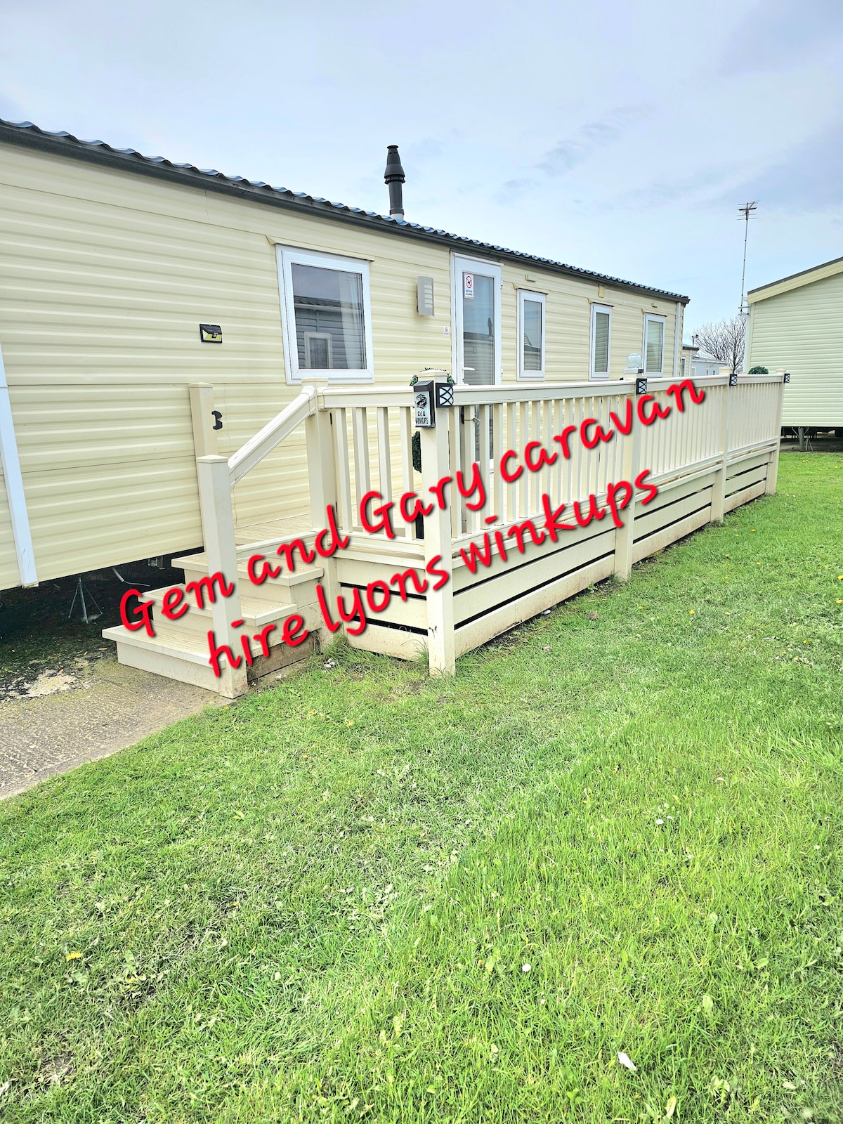 Sharon’s Lyons lido caravan, 3 beds, by the beach.