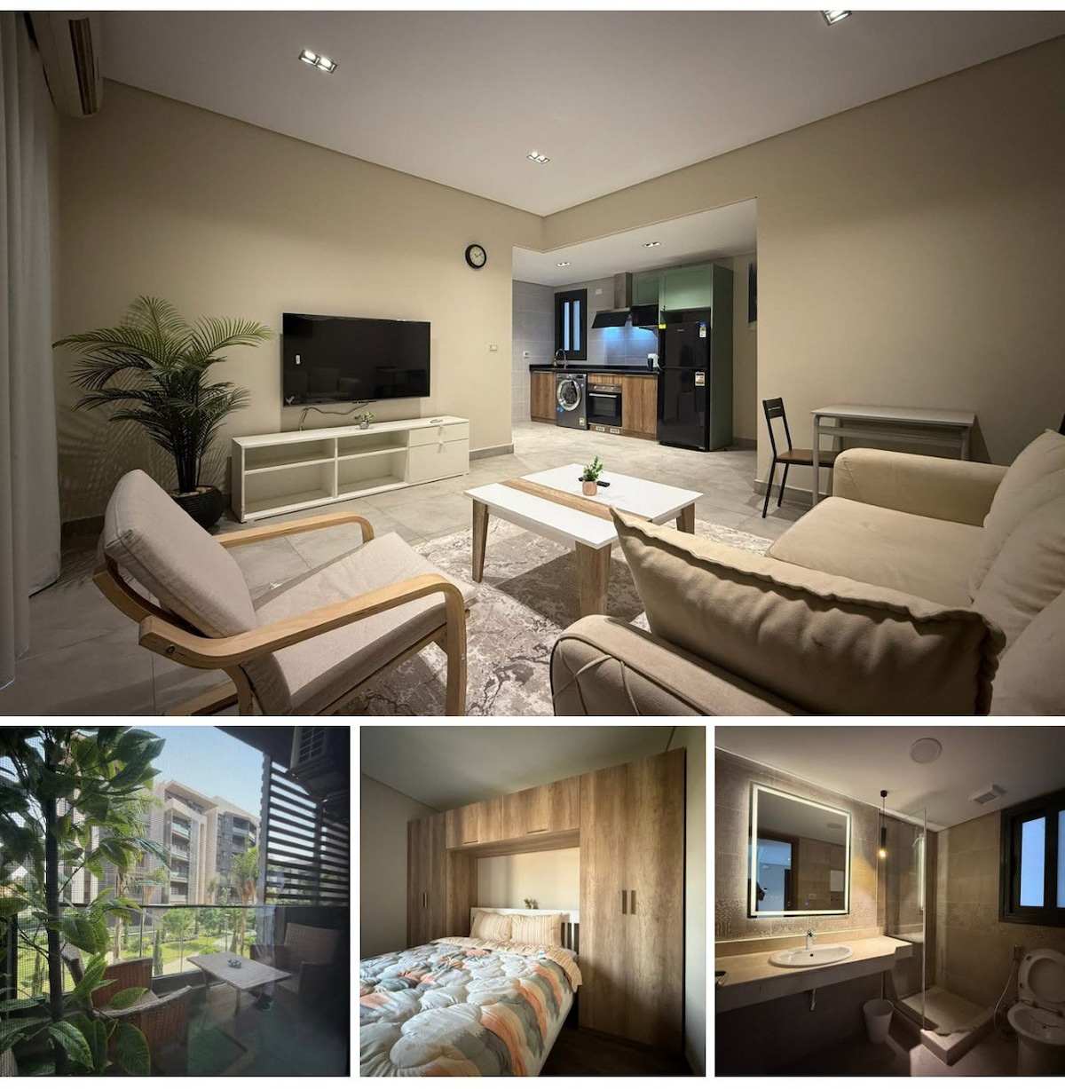 Tere tulemast oma kaasaegsesse puhkepaika New Kairos! See hubane kahe magamistoaga korter asub vaikses ja turvalises suletud korteris, mis sobib ideaalselt peredele, ärireisijatele või kõigile, kes soovivad mugavalt ja stiilselt lõõgastuda. Vaid mõne minuti kaugusel Kairo festivali linnakeskusest, kust pääseb hõlpsasti poodidesse, restoranidesse ja kohvikutesse. Olenemata sellest, kas külastad äri-, vaba aja veetmist või perepuhkust, pakub see korter täiuslikku kombinatsiooni mugavusest, privaatsusest ja mugavusest.