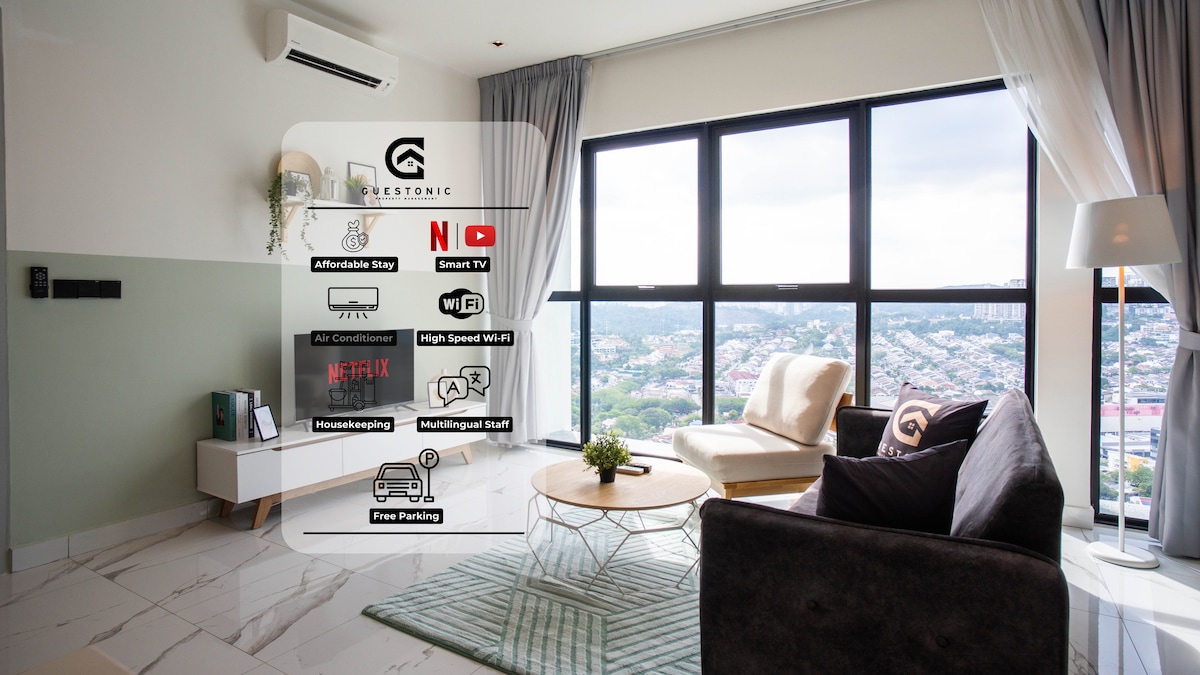 Lõbutse kogu perega, kuna see koht annab otsese juurdepääsu jalutuskäigule Sunway Lagooni teemapargi, Sunway Pyramidi ostukeskuse, Sunway meditsiinilise haigla ja Sunway Uni juurde. Majutuskohas on naturaalsed tumedad puitpõrandad, mis on varustatud UHD lameekraaniga teleri ja Netflixi kanaliga. Sind hämmastab Sunway kuurordi vaade, mis on kindlasti suurepärane, mis laenab end pildistamisele ja postitamisele sinu sotsiaalmeedias!