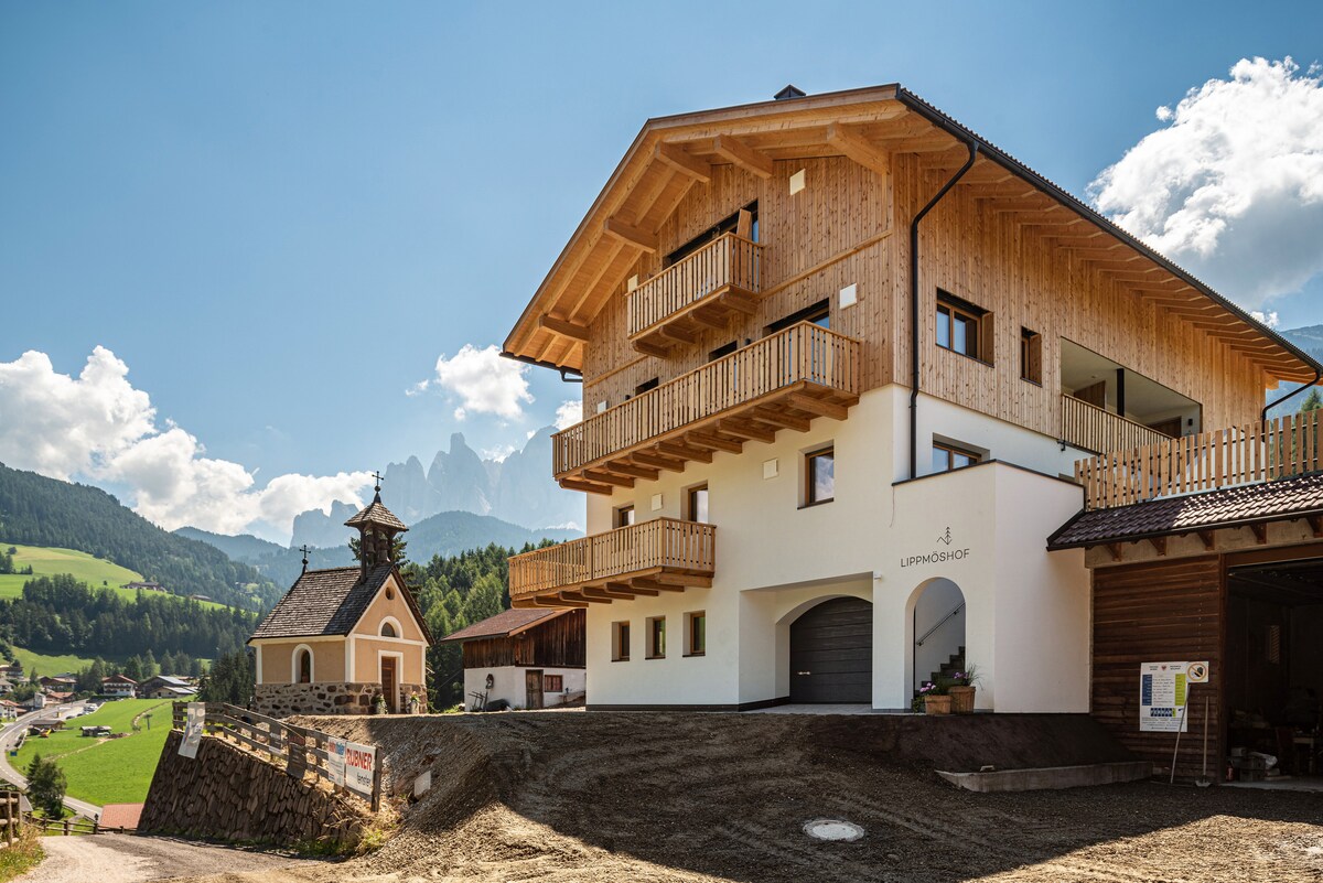 Our apartment is located in the peaceful village of St. Magdalena and offers a magnificent view of the Geisler Peaks, which are part of the UNESCO World Natural Heritage. The small apartment is on the first floor of a residential building and is simply yet lovingly furnished; the spacious balcony invites you to relax and unwind. The apartment also includes a garage. The Villnöss Valley is easily accessible by public transport and is an ideal starting point for hikes and mountain tours.