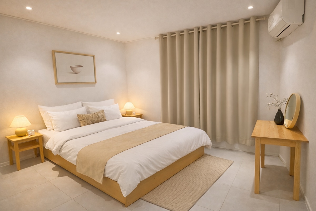 Seongsu südames, mis on üks Souli kuumimaid kohti, saad nautida hubasust ja rahulikkust nagu üllatust. Kui ronid maapinnast vaid üheksa treppi, kohtub Dalae House sinuga! Rahustav on meie paari esimese kassi nimi. =) # 1. Ümbritsevad tingimused - Kaugus peamistest turismiobjektidest (jalutades): Space Wadizu 5 sekundit, Dior Seongsu 3 minutit, Souli metsapark 20 minutit - Külgnev metroojaam (jalutuskäigu kaugusel): Seongsu jaam 6 minutit, Ttukseomi jaam 6 minutit, Souli metsajaam 9 minutit - Tee majutuskoha ümber: tasane ala, kus saad mugavalt oma pagasit vedada ilma paljude autodeta # 2. Sisemine olek - Juriidiline majutus, Sesco juhtkond, kõrge temperatuuriga steriliseerimise desinfitseerimine lõpetatud - Isikliku hügieeni jaoks ette nähtud ühekordselt kasutatavad esemed (sussid/hambahari/hambapasta/käsn/nõudepesulapp/dušinurk jne) - Queen-suuruses kiirlipi madrats, keskkonnasõbralik puuvillane voodipesu, spetsiaalne pähklipuidust tualettlaud - Sajandi keskpaiga valgustus ja illustreeritud söögituba - Iseteeninduslik toitlustamine, täielikult varustatud toiduvalmistamisvahenditega # 3. Üksikasjad - Saabumine kell 15.00, lahkumine kell 11.00 - Ruumides ei tohi parkida