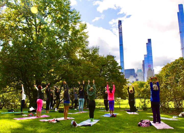 Liitu igapäevaste mitmetasandiliste joogatundidega Central Parki südames, mida ümbritseb loodus.