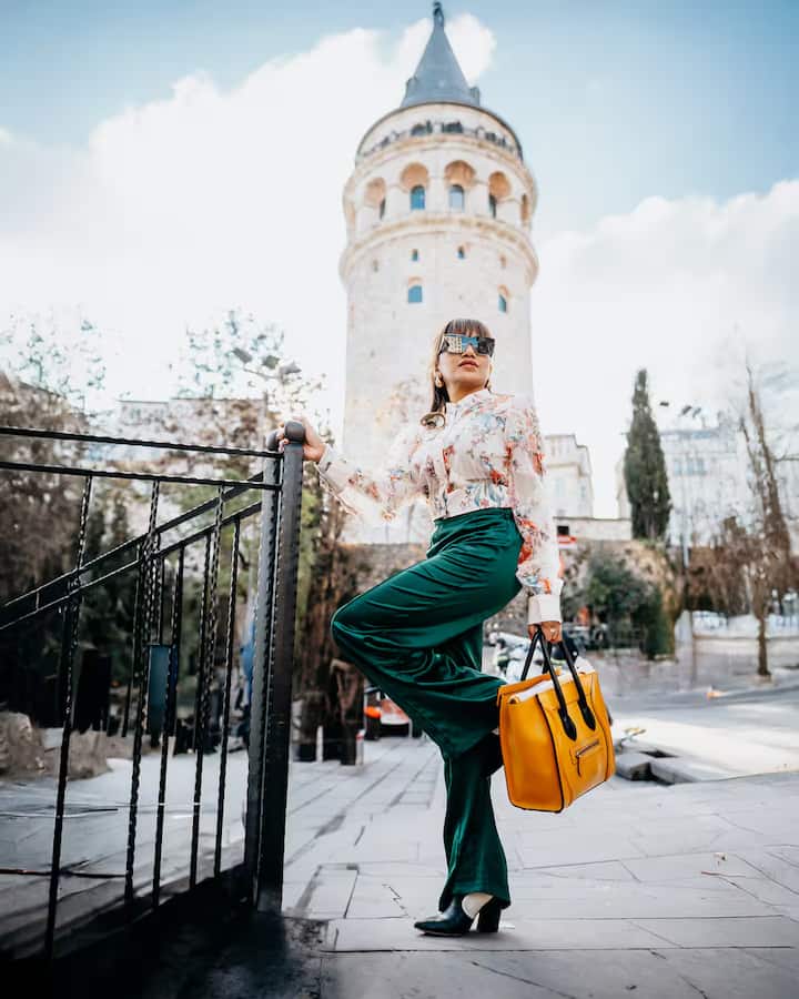Pildistamine ajaloolise punase trammi, Galata torni ja Galata silla juures (taust uue mošee ja Suleymanie mošeega)