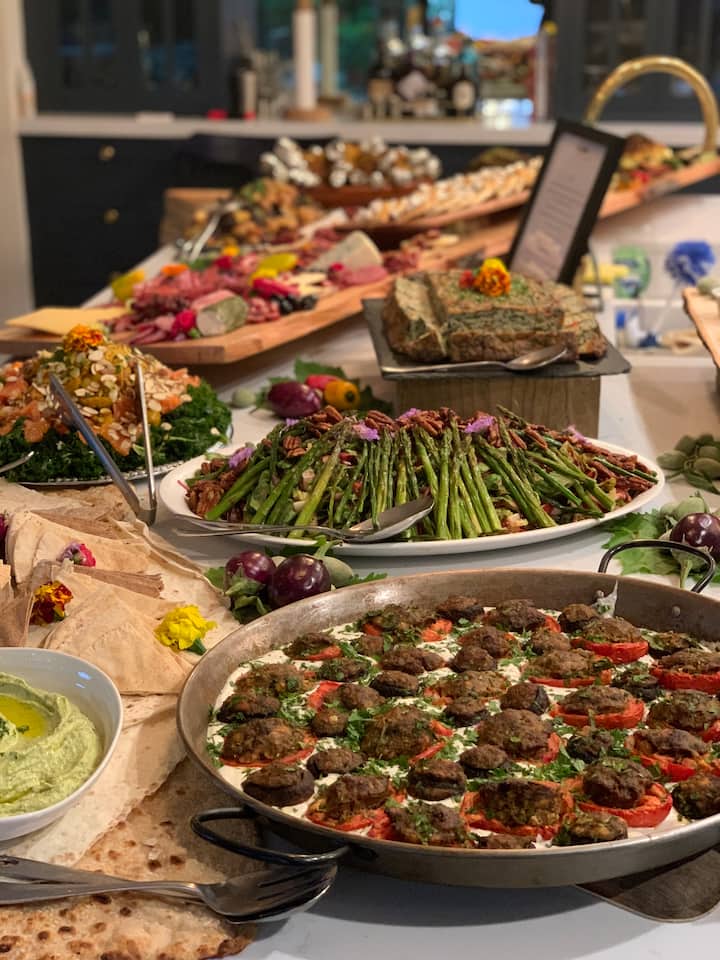 Naudi Prantsuse, Vahemere ja Lähis-Ida koostisosade kombineerimist einega, mis sisaldab eelroogasid, eelroogasid, põhiroogasid ja magustoitu. Menüü võib sisaldada selliseid esemeid nagu loominguline hummus, babaghanoush, feta-beet mousse, veisekefta, muhammara, Liibanoni za'atari pizzetta, kana shawarma, kana sumaci ja sidrunitega, falafelid või grillitud kala konserveeritud sidruni ja apteegitilliga. Taimetoitlane, vegan, pescatarian, kosher on võimalikud. Üle 12-liikmeliste gruppide puhul saada sõnum kohandatud teenuse kooskõlastamiseks.