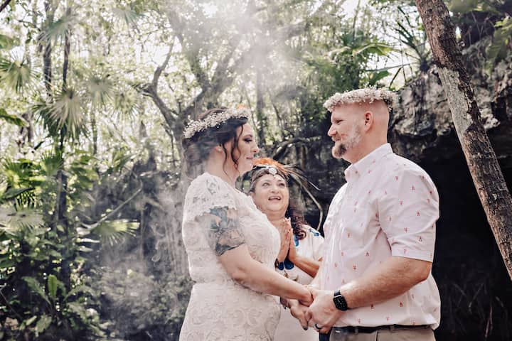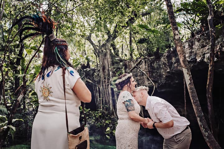 See šamaani juhitud cenote 'i põgenemine, mis on juurdunud loodusest ja maiade traditsioonist, sisaldab altari seadistust, lillekrooni, lillekimbu, boutonniere' i, hispaania-eelset muusikat, šampanja röstsaia, rannasessiooni ja 120-200 pilti. Võta Playa del Carmen peale