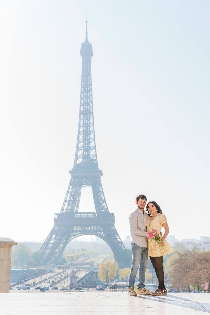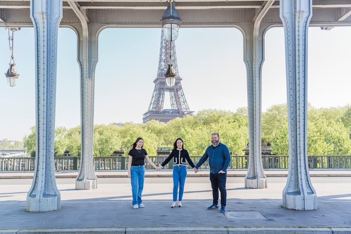Fotosessioon Trocadéro aedades ja Bir Hakeimi sillal. Eiffeli torni mitu vaatenurka, erinevad poosid ja mitmesugused pildid.