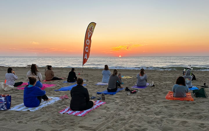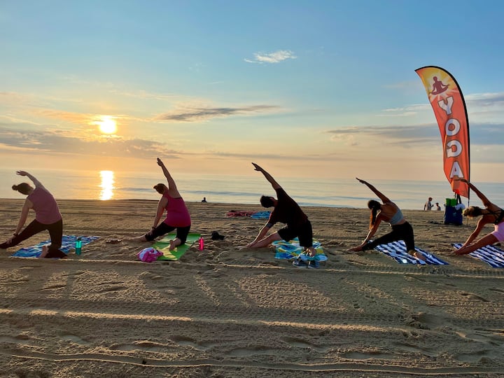 Naudi joogat rannas ilusas Bethany Beachis, Delaware 'is. Osalejaid juhendatakse pooside ja järjestuste kaudu, mis edendavad paindlikkust, tasakaalu ja teadvelolekut. Need seansid pakuvad noorendavat, rahulikku ja maandavat harjutust looduses, nautides samal ajal tähelepanuväärset päikesetõusu üle Atlandi ookeani.