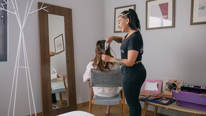 Saa läikiv, salongivärske välimus ilma Airbnb-st lahkumata. Juukseid kuivatatakse ja vormitakse tipptasemel toodete ja vahenditega, et tagada nende kaitse, siledus ja volüüm.