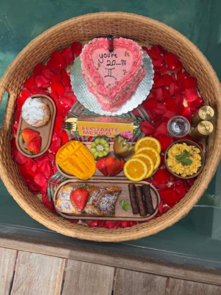 See kahele mõeldud pakett sisaldab kaunistatud ujuvat kandikut, väikest sünnipäevatorti säraküünlaga ja hommiku- või lõunasööki. Vali prantsuse röstsai või pannkoogid, peekon või vorst, munapuder, puuviljavaagen ja mahl. Lõunasöögiks naudi kolme taco'd, riisi, ube, krõpse ja salsat ning agua frescat.