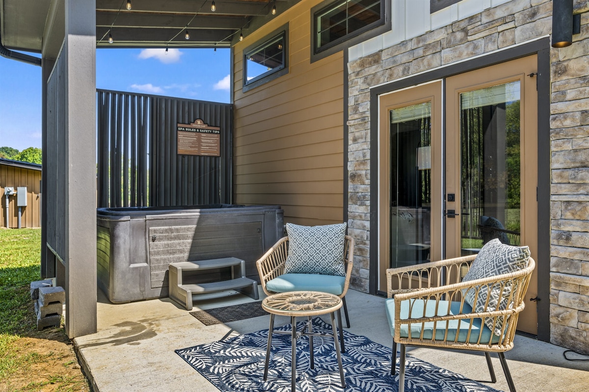Privaatse terrassiga, kümblustünni ja lõkkekohaga maja puu otsas