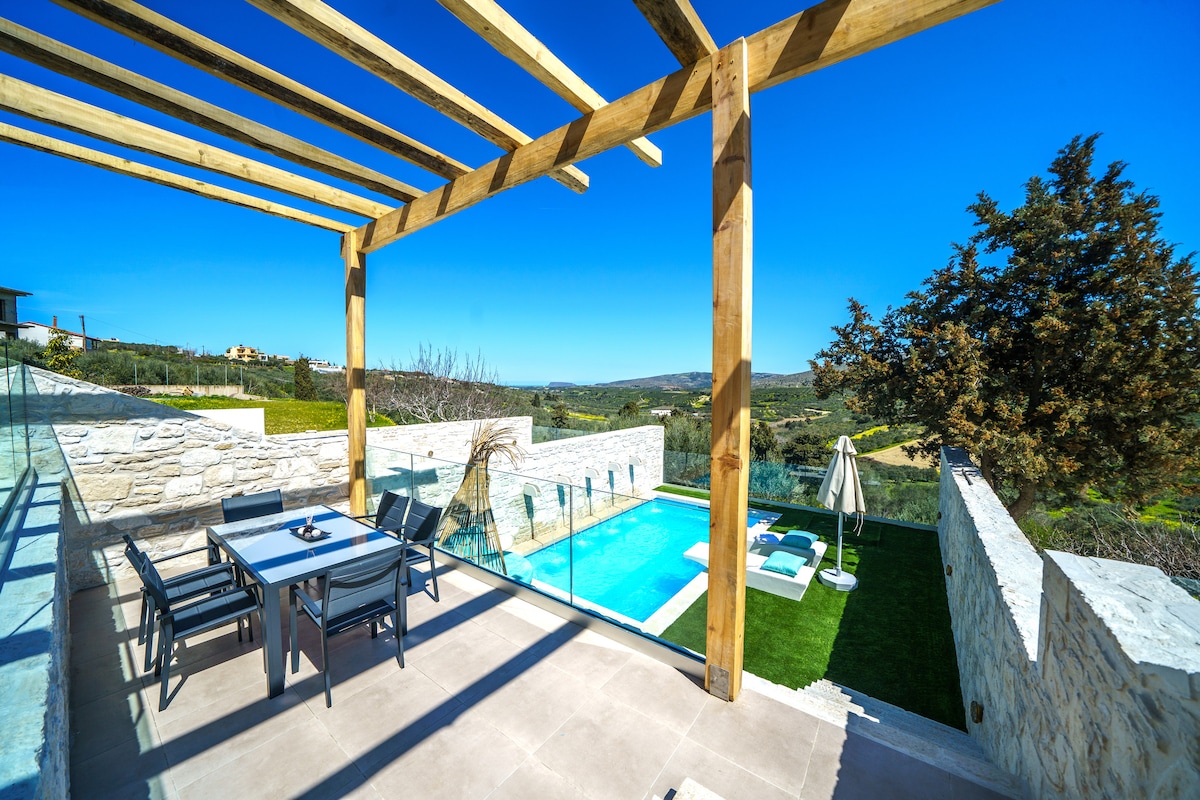 Koge lõõgastumise hetki privaatses basseinis ja lõõgastu, nautides samal ajal hingematvat vaadet Kreeta maa värvilise kombinatsiooniga. Oliivide ja viinapuude taimestik, mägede hall ja meresinine võluvad sind. Uues puhkepaigas, mis on loodud selleks, et pakkuda külalisele kõiki mugavusi, kuid ka suures hoovis, tunne end lõõgastunult ja mugavalt. Naudi mullivanni, nautides samal ajal külmutatud perereini, mida pakume oma külalistele kingituseks.