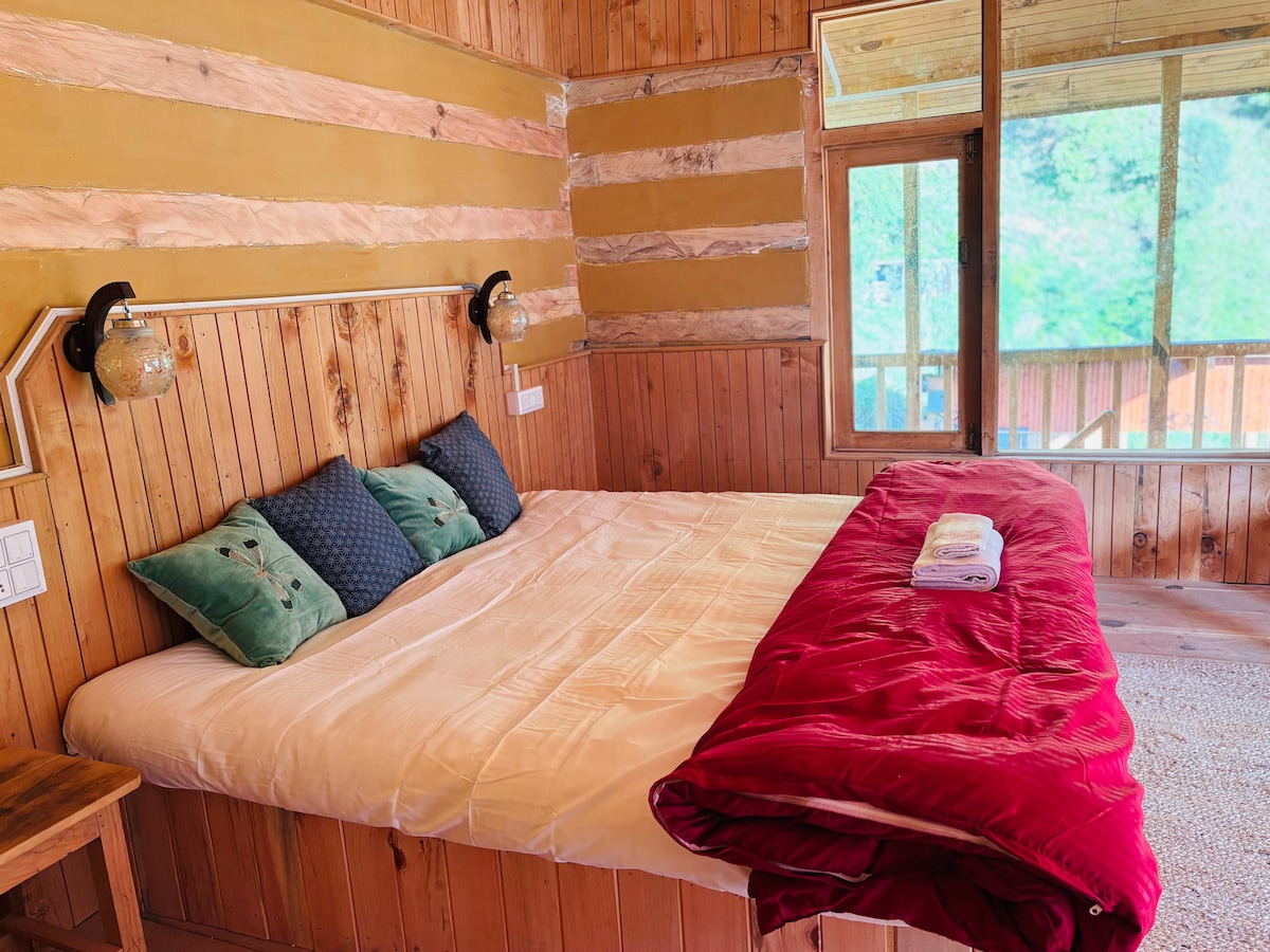 * Relax with the whole family at this peaceful place to stay. a wooden cottage in the middle of mountain with a spectacular view * there's a spacious bedroom, and an attic which function as a bedroom * bone fire 500/- * Broadband Wifi free * our cottage is in one of the most beautiful spots in the town. * Every single guest who stayed with us left happy. * there's a 700 meter trek, hut 99% of the young adults can make it.