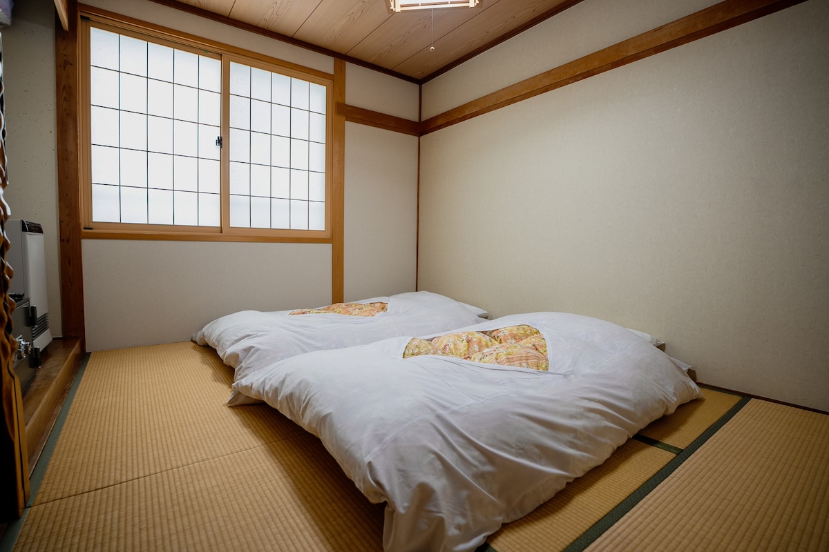 Tere tulemast Jaapani stiilis perehotelli Yukiguma Lodge 'i, kus on eraldi toad jagatud mugavustega. Naudi mugavust meie hubases kahekohalises toas, kus on mugavad magamismatid traditsioonilisel tatamipõrandal. Toas on individuaalne küte, piisavalt hoiuruumi ja juurdepääs kiirele wifile.