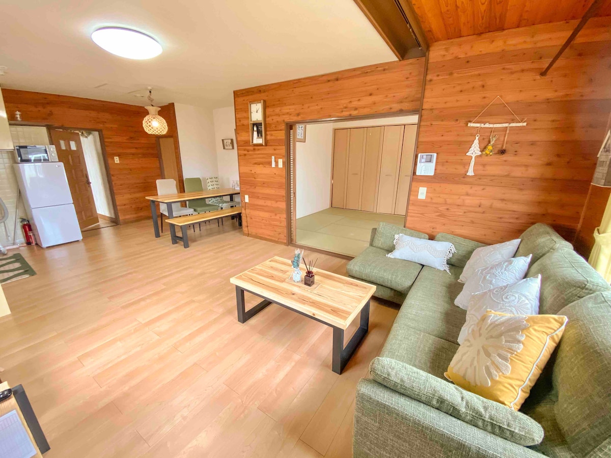 Pikaajalised peatumised/suvi/talvepliit Elu/Lastega reisimine/ Võite nautida kuumaveeallikaid, mis voolavad allikast siseruumide vannis ja vabaõhuvannis. See on suur vann 4 inimesele.Naudi tähistaevast privaatses vabaõhuvannis! Võite jääda soojaks isegi külmal talvel puidust ahju pehme soojuse ja kuumaveeallikaga põrandaküttega. 8 tatami mattide vahel asuv magamistuba on veranda ja shoji ning saate Jaapani maja maitses aeglaselt puhata.On 2 looduslikku spaavanni. Üks on väljas ja sa saad nautida privaatset aega õllede joomist, tähtede nägemist. Mõlemad on piisavalt suured 3 täiskasvanule. Kuum spaa liigub põranda all ja puukamina tuli soojendab sind talvel. Saad lõõgastuda ja magada hästi magamistubades, kus oleks Jaapani traditsiooniline tatami ja shoji (liuguks).