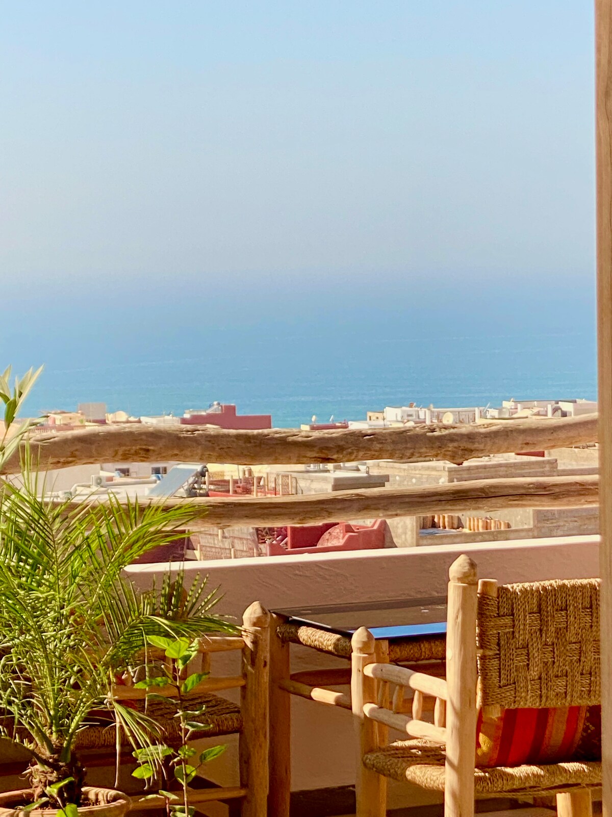 C'est le seul appartement dont le balcon de 17m2 est construit au dessus du chemin qui longe la plage, offrant une vue exceptionnelle sur les vagues, le village, les pêcheurs, les surfeurs. Très confortable, décoré et entretenu avec soin pour un séjour exceptionnel au dessus de l'océan, proche des nombreux cafés et restaurants longeant la plage et à 2 pas des écoles de surf, au coeur de ce village berbère convivial mêlant pêcheurs, commerçants, surfeurs du monde entier...et quelques touristes.