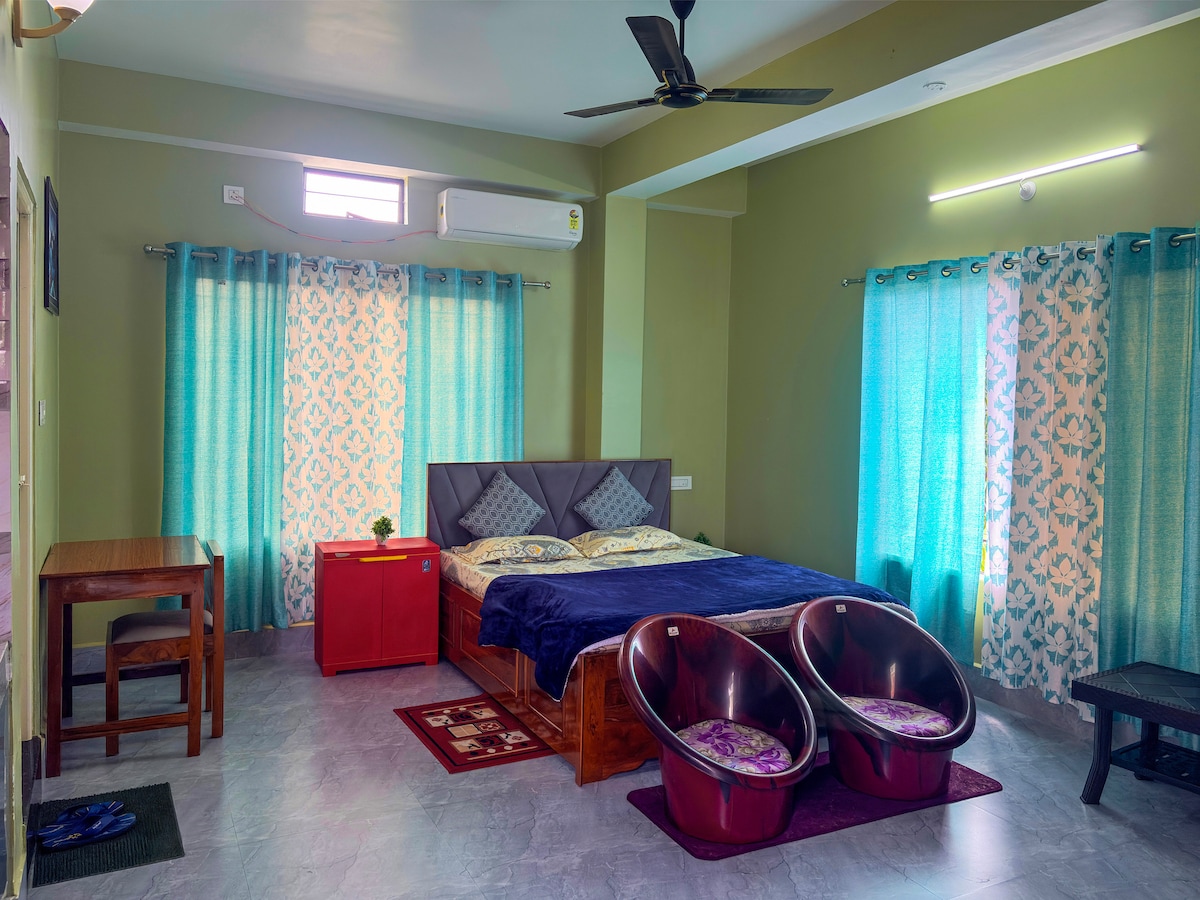Welcome to your home away from home! Located just 7 minutes from NJP Railway Station and 20 minutes from Bagdogra (IXB) Airport, this bright and spacious stay (1300 sq. ft) offers a large living room with big windows and a comfy bed, plus a generously sized bedroom filled with natural light. Located in a good neighborhood with easy access to stores, eateries, and transport, it’s perfect for families, couples, or solo travelers seeking comfort and convenience. LOCAL ID ACCEPTED