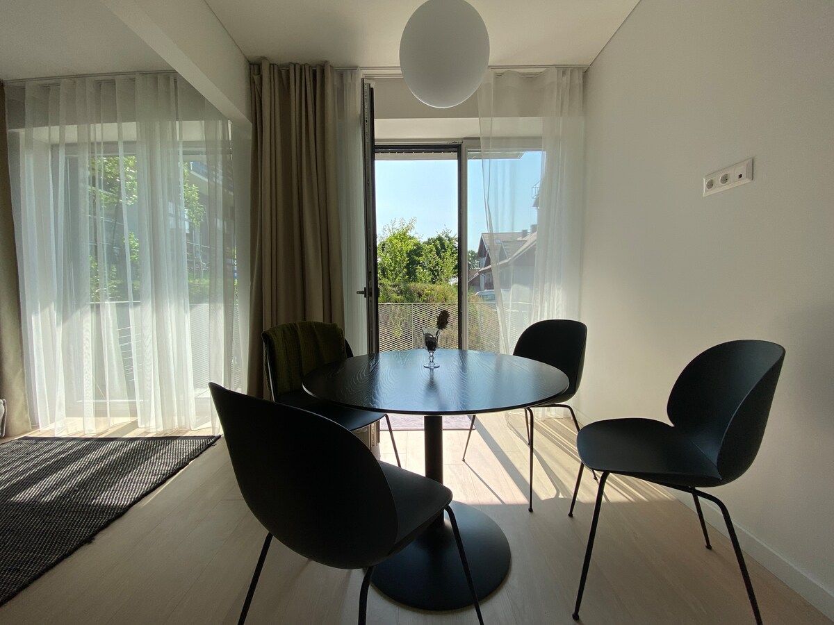 A stylish and newly furnished studio in the heart of Juodkrante and a minute walk from the forest. There are 3 studios within this type and it will be assigned automatically. It features a comfortable sofa-bed, TV, kitchen, a desk for work and dinning as well as a shower. The building is surrounded by nature, there is a 1.1 km forest path to the sea and 2 min. walk to the lagoon. You may enjoy calm view from your windows. You will receive a key code to enter the building as well as your room.