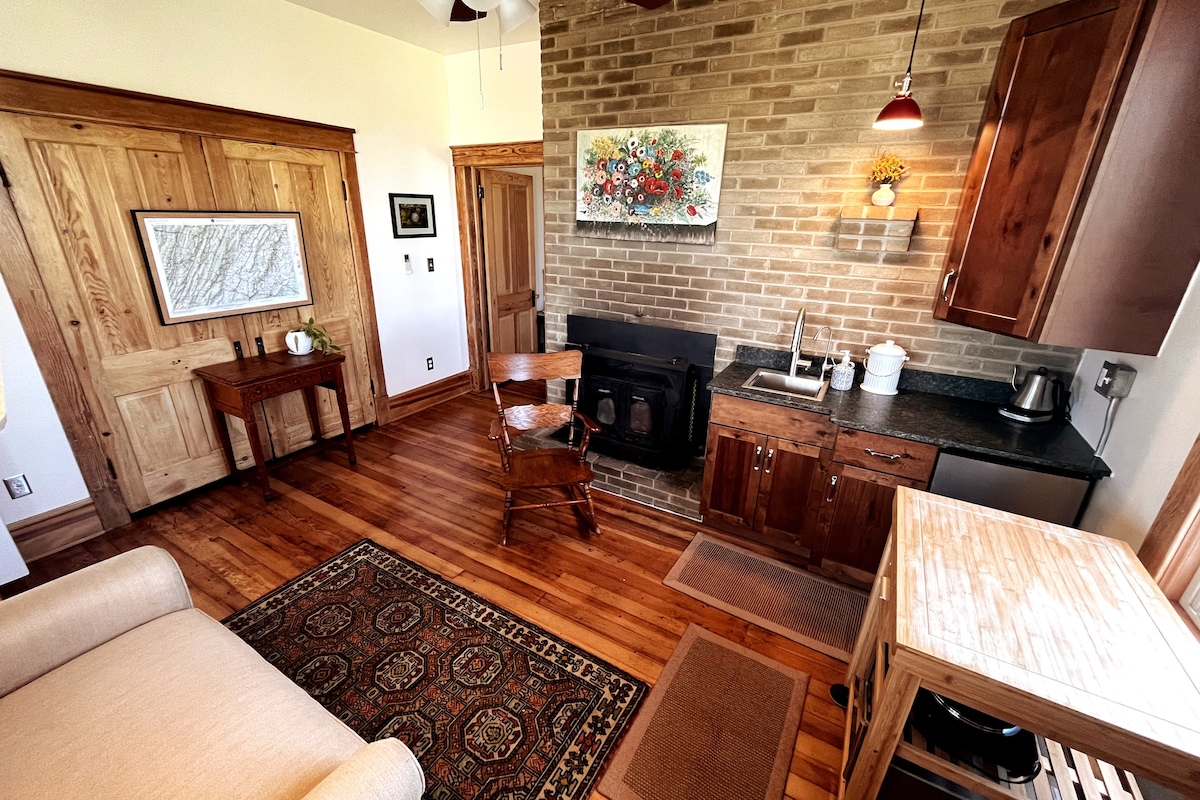 Farm Stay, escape to the country. Updated historic cottage is in a quiet country setting in the heart of the Shenandoah Valley, rural yet not remote. Enjoy a time of peaceful renewal. Relax overlooking the pastures and beautiful garden common space in the backyard retreat including a hot tub. Studio apartment with queen bed and additional futon sofa. Kitchenette is equipped with refrigerator, microwave, coffeemaker and dishes. Breakfast includes muffins, granola, and coffee.