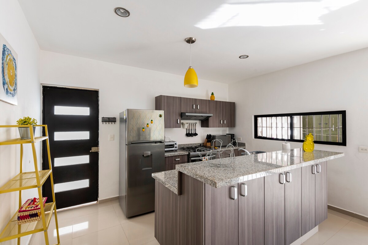 Casa Honeybun – privaatne terrass ja bassein Méridas. Lõõgastu terrassil, kus on puhkenurk ja grill, ning naudi basseini, mille juures on välidušš. Ideaalne peredele puhkusel või kaugtööks kiire internetiühendusega. Kõik on valmis, et saaksid lihtsalt nautida: privaatne parkimine, täielikult varustatud köök, söögituba, pesukeskus, nutitelerid, kliimaseade ja ventilaatorid igas toas. Mugavus ja stiil sinu ideaalseks peatumiseks!