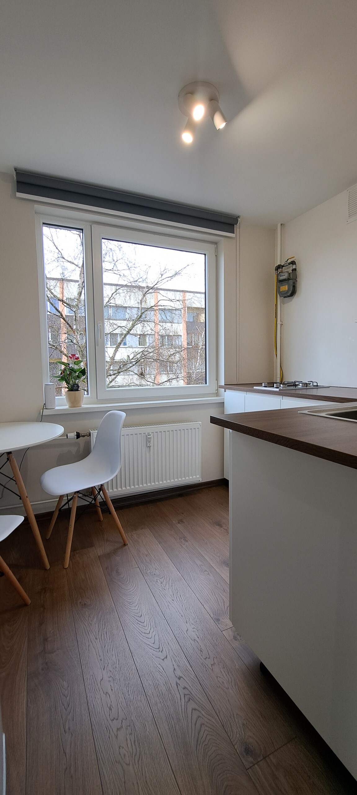 Located in the best neighborhood in Liepaja - safe, quiet. Very close to the BEACH, shopping centers, restaurant "Olive", pizzerias, pedestrian and a bicycles path. The 1-room freshly renovated apartment (35 m2) are located on the 3rd floor. BALCONY with a greenest view on park trees and sound of the birds and sea. Free parking by the house. 25 minutes walking distance from the Liepaja centre. Tram stop is very near. You are only short ride away from city centre.