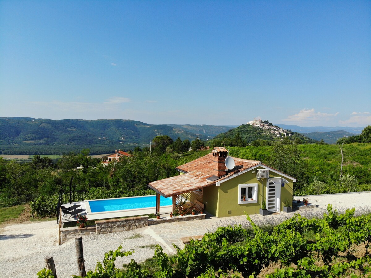 UUS - soojendusega bassein! Väike, hubane ja eraldatud maja Kranceti külas (1 km kaugusel Motovunist), sobib neljale inimesele. Maja sobib ideaalselt paaridele, peredele ja üksikisikutele, kes otsivad rahustavat, tervislikku ja aktiivset kogemust. Seal on privaatne bassein suurepärase vaatega Motovunile ning õuelaud ja -toolid, mis sobivad ideaalselt hommikusöögiks või romantiliseks õhtusöögiks.