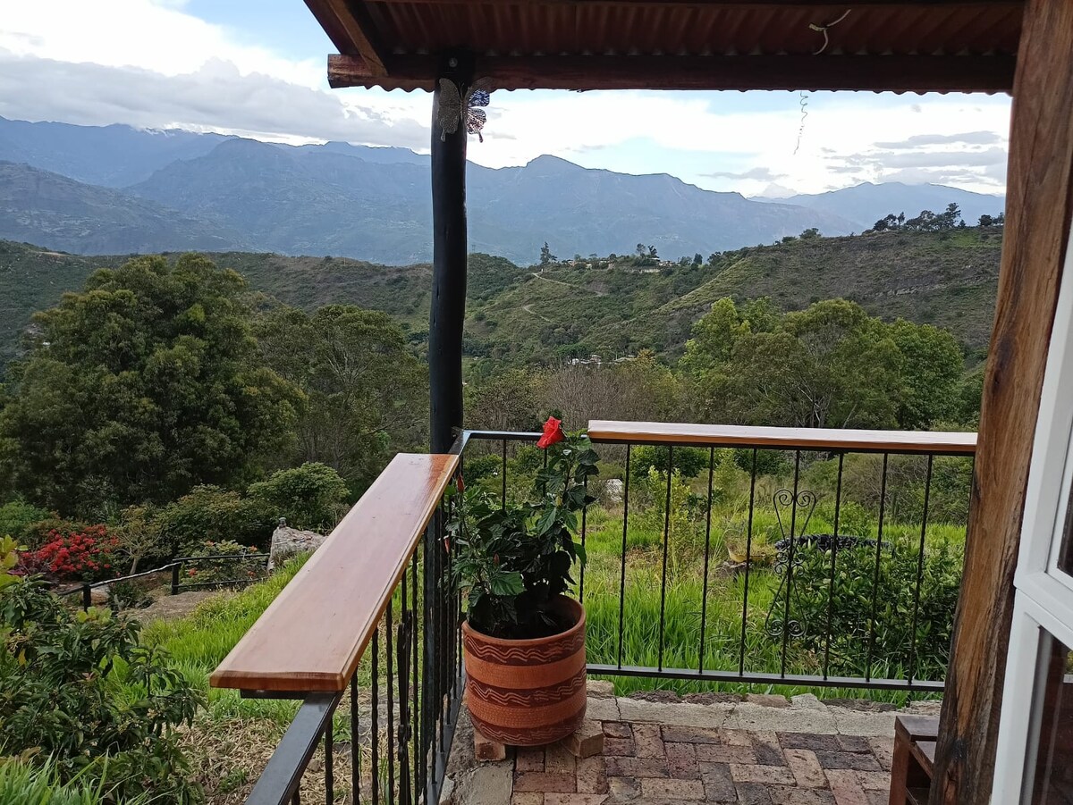 Este lugar único tiene su propio estilo. Una lujosa cabaña con Jacuzzi y excepcional vista al cañón del Chicamocha. Espaciosa, cómoda y hermosa.