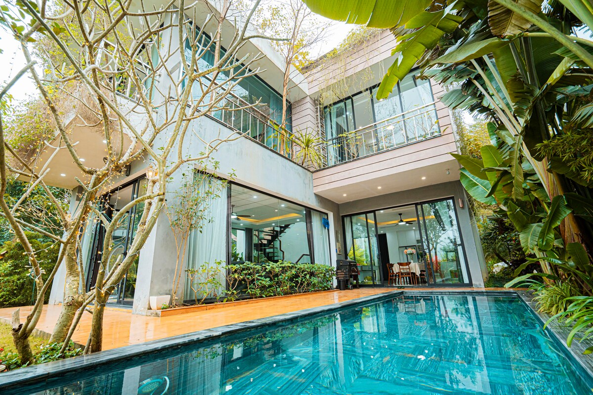 🌲 50 phút lái xe từ trung tâm Hà Nội, bạn dễ dàng tận hưởng không gian nghỉ dưỡng sang trọng, xây dựng theo phong cách kiến trúc mở hiện đại, hòa quyện hoàn hảo với thiên nhiên. 🌲Villa được bao quanh bởi rừng thông 40 năm tuổi. 🌲Thiết kế mở với hệ thống cửa kính lớn, giúp ánh sáng tự nhiên tràn ngập không gian và đưa cảnh sắc thiên nhiên vào từng góc nhỏ. Mùa đông có hệ thống sưởi và bể bơi nước ấm. 🌲Villa có 4 phòng ngủ, mỗi phòng đều có ban công rộng rãi, view rừng thông tự nhiên.