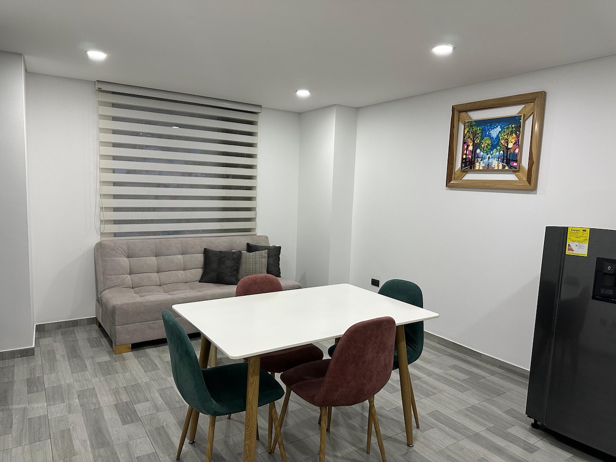 Naudi mugavust ja rahu selles kaasaegses apartaestudios, mis sobib ideaalselt paaridele ja ärireisijatele. Asud Sogamoso kesklinnas poodide, restoranide ja turismikohtade lähedal. Põhiomadused: • Hubane majutuskoht: minimalistlik disain kõigega, mida vajad mugavaks peatumiseks. •Varustatud köök: sisaldab külmkappi, pliiti ja põhiriistu. •Tuba: mugav kaheinimesevoodi, voodipesu ja teler •Privaatne vannituba •WiFi.