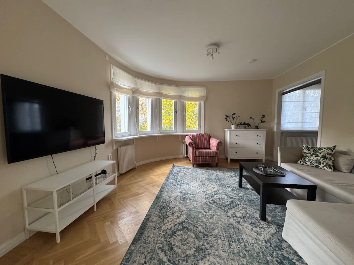 Stiilne ja äsja renoveeritud korter ühele või kahele inimesele Solna kesklinna keskel. Kolmest korterist koosnev maja on ehitatud 1929. aastal ja asub kenas aias, kus on kevadel ja suvel palju lilli. Pendelrongijaama lähedal ja 2 peatust Stockholmi linna. Naabruskonnas on supermarket ja restoranid ning jalutuskäigu kaugusel Mall Of Scandinavia ja Friends Arenast. Koge rohelist oaasi linnakeskkonnas!