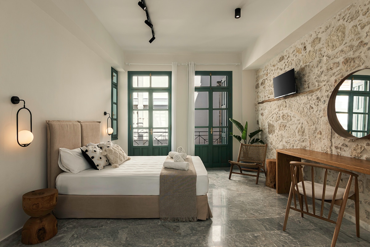 Soleil Boutique House is located in the heart of the Old Town of Rethymno near the beach, the Venice port, and the Fortezza fortress. It is a heartbeat away from restaurants, bars, and market. This historic and unique residence comprises a veranda and a stylish terrace. It guarantees a relaxing stay and offers spectacular views over the Fortezza fortress, and the golden sunsets. The original architectural elements have been carefully preserved offering traditional essence with modern aspects.