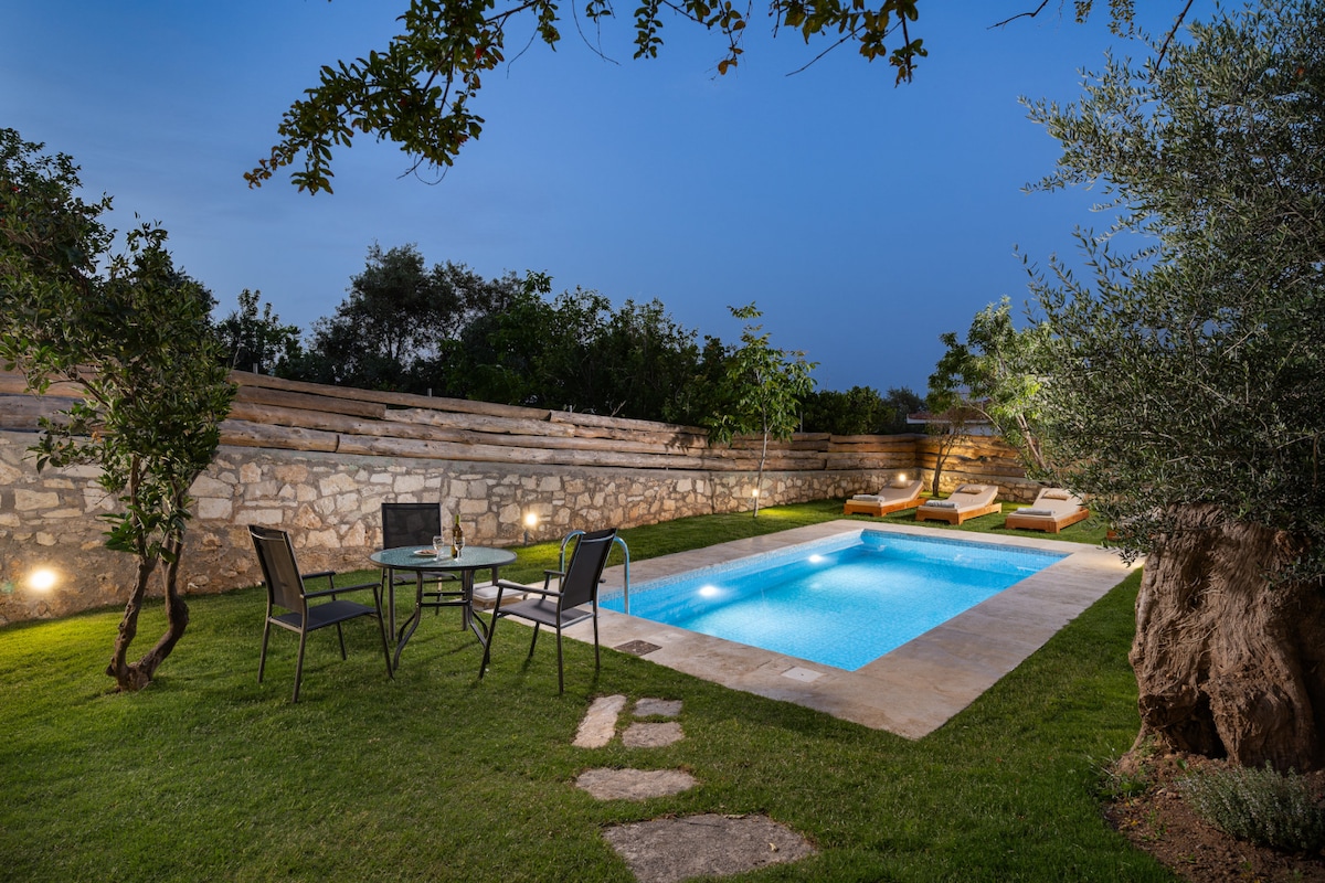 Wake to the sound of birdsong, to an already inviting adventure and exploration. Our Eforasis Villa is a breath of fresh air. Cradled within a peaceful land near Armeni Village, this heart-stirring sublime villa boast impeccable design, spacious grounds and private pool. Just a few minutes away from culinary award wining restaurants, but still close to Rethymno lively town and easily accessible to sandy beaches Eforasis Villa is ideal for Enchanted Stories & Family Entanglements.