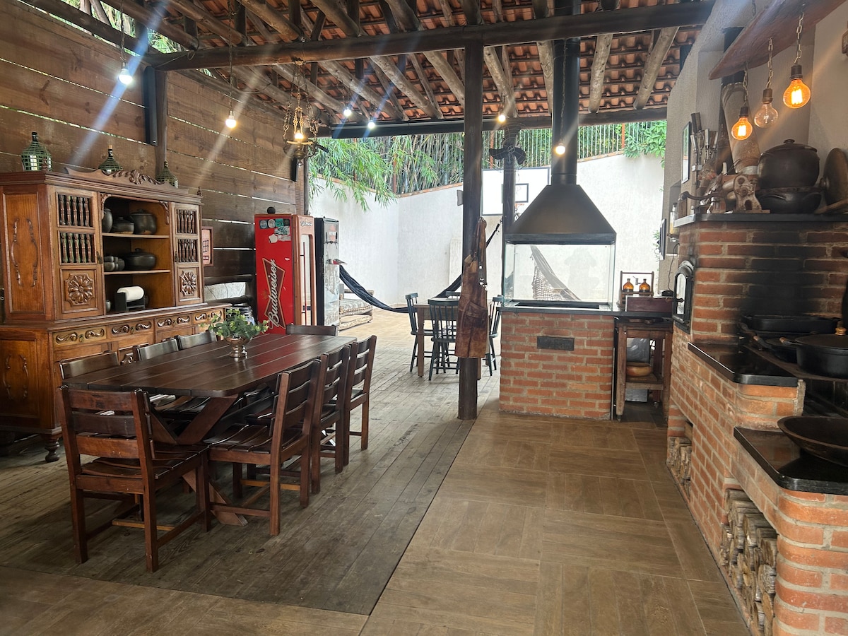 Sua família vai estar perto de tudo em um ponto central da cidade em um espaço amplo e tranquilo, muito estiloso com uma grande piscina, mini quadra de basquete, churrasqueira, fogão a lenha, fogueira, tudo para que esse momento seja inesquecível.
