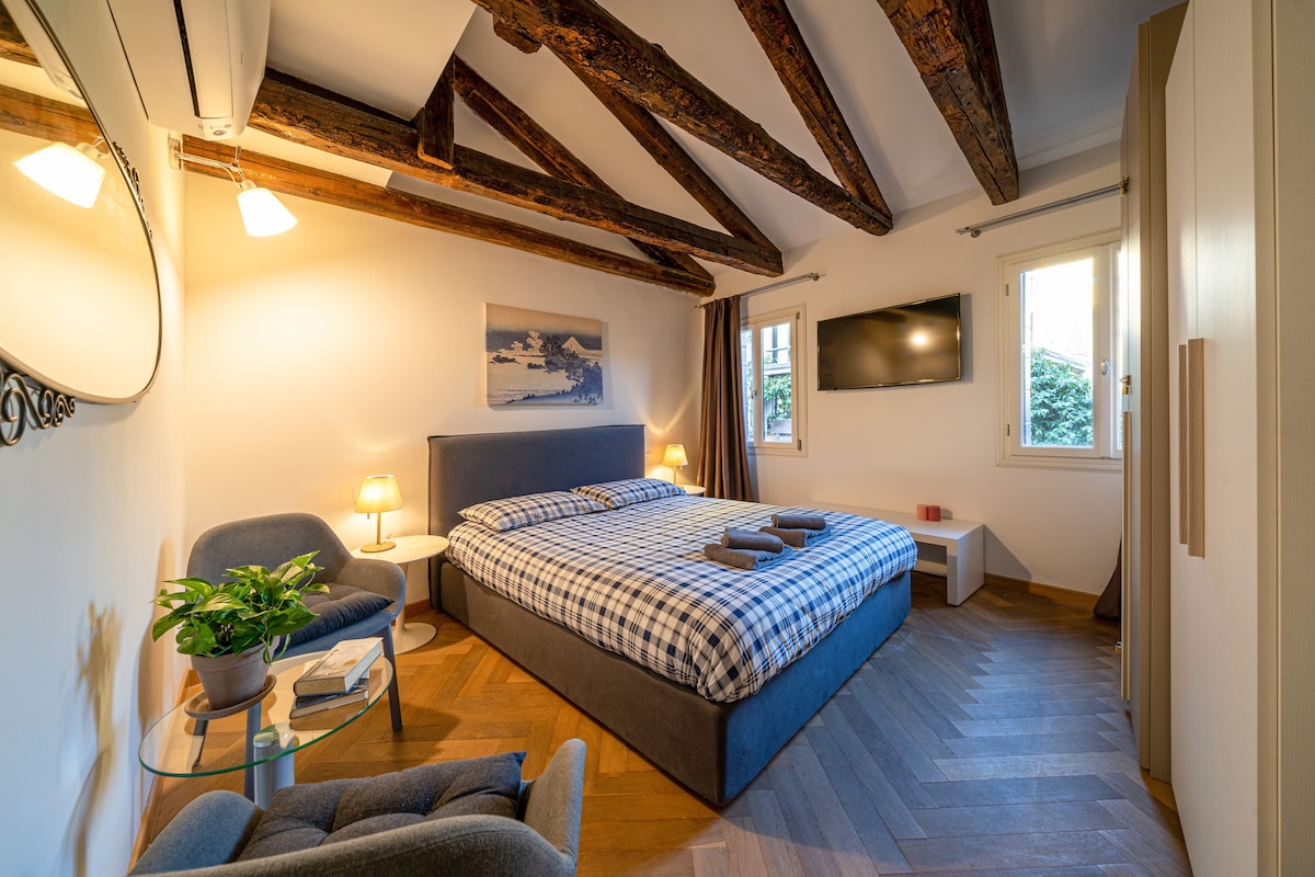 See elegantne ja ainulaadne korter sobib ideaalselt paarile, kes soovib nautida Veneetsia romantikat. Privaatne terrass vee ääres võimaldab romantilisi hommikusööke või küünlavalgel õhtusööke. Suur voodi, avar dušš ja peen puidust viimistlus peegeldavad suurt tähelepanu detailidele. Korteris on olemas kõik mugavused: televiisor, kohvimasin, nõudepesumasin, wifi ja kliimaseade.
