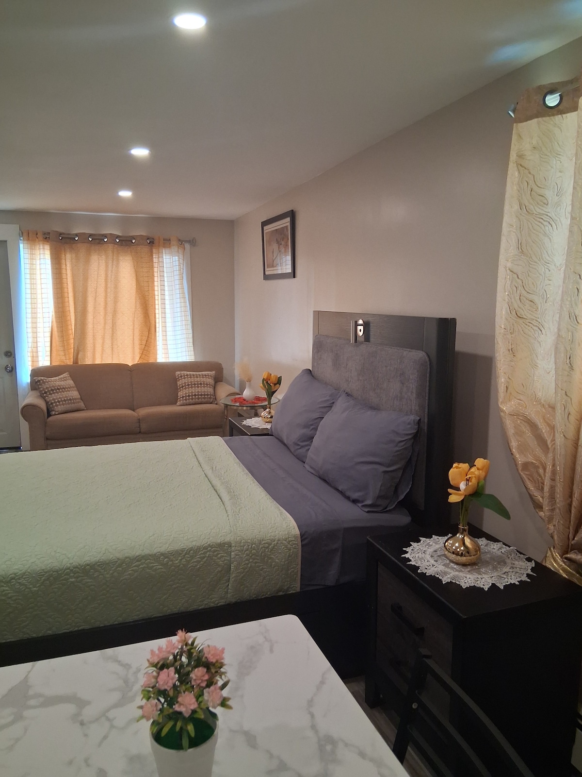 Serenity Suite on funktsionaalselt kujundatud, avatud kontseptsioon, madalama taseme ruum, kus on ERALDI SISSEPÄÄS, köök, magamistuba, vannituba ja istumisalad. Puhta kaasaegse disaini ja sisustusega Serenity Suite pakub hubast, rahulikku ja turvalist keskkonda. Lõõgastu selles äsja renoveeritud äärelinna sviidis, mis asub 10 minuti kaugusel UBS Arenast ja Belmonti pargist, 5 minuti kaugusel Beltist ja Southern State Parkwaysist, 15 minuti kaugusel JFK-st, 10 minuti kaugusel LIRR-ist ja 25 minuti kaugusel LGA-st.