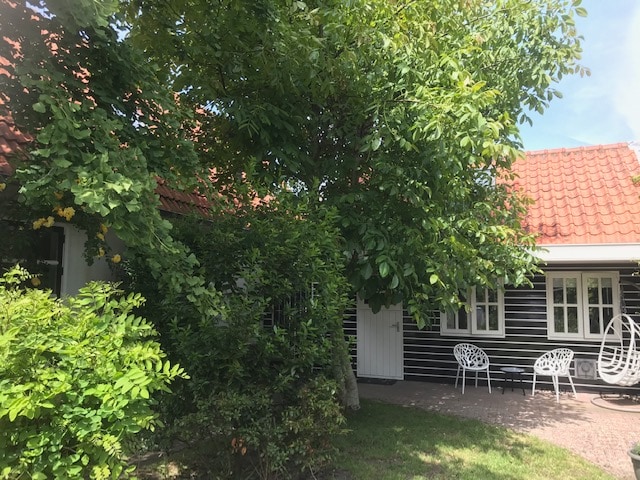 See ilus puhkemaja oli varem 100-aastane vankrikuur, mille vanad talad on võimalikult palju säilinud. Maja asub meie 400-aastase monumentaalse talumaja hoovis, kus me elame koos oma lammaste, kanade ja koeraga. Majal on oma väliistekohad. Talu vastas on Lek jõe luhad paljude toredate väikeste randadega. Ja kiviviske kaugusel on hubane hõbedalinn Schoonhoven.