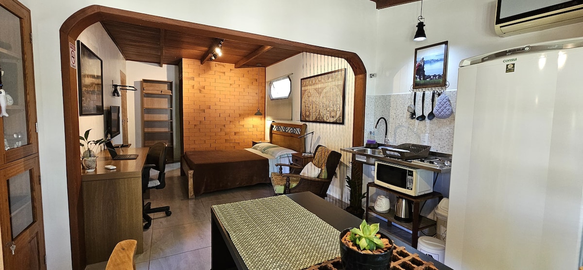 Uus ja kaunistatud stuudio, vaid 50 m kaugusel Jurerê Tradicionali rahulikust rannast ja võluva Canajurê lähedal. Ideaalne neile, kes otsivad rahu ja soovivad samal ajal olla Jurerê Internacionali tormi lähedal. Perekorter, turvaline ja loodusest ümbritsetud — kus ärkad lindude heli peale ja lõpetad päeva nautides päikeseloojangut liival. Kompaktne ja hubane koht eksklusiivse parkimiskohaga.