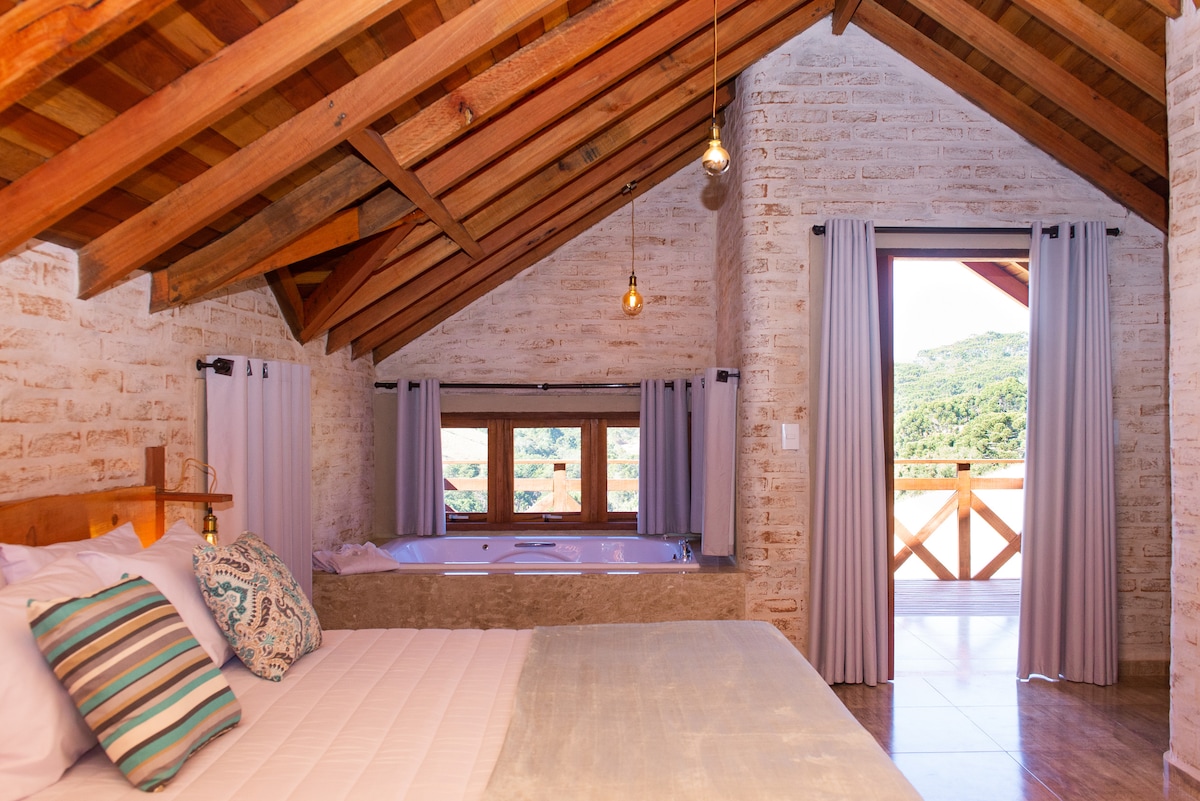 Seed on paariks mõeldud mägisuvila. Puude varikusse ehitasime diferentseeritud mägisuvila, kus on mugavus, praktilisus ja uskumatu vaade Serra da Mantiqueirale. Varustatud kaheinimesevoodiga, wifi optilise kiu, nutiteleri, kütteseadmete ja miniköögiga (2 põletiga elektripliit, mikrolaineahi, minibaar ja söögiriistad). TÕSTA ESILE vesivahendit, kust avaneb panoraamvaade Serra da Mantiqueirale.