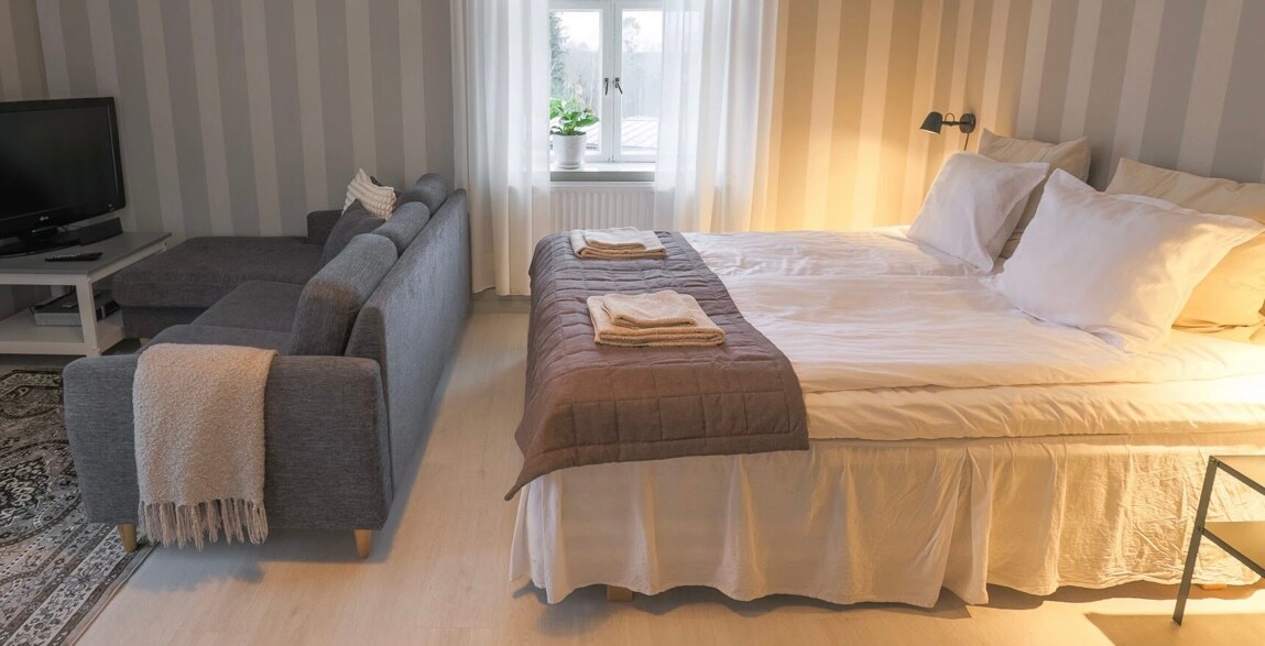 Kodune hotellituba suurepäraste mugavustega Hiisi Hotel Turku Seaportis Turu sadamas. Elamus on kontaktivaba ja saabumine lihtne. Kaheinimesevoodiga tuba sobib kuni kahele inimesele. Töölaud ja tool ning vannituba, lameekraaniga televiisor ja wifi. Kõigis tubades on minikülmik. Sisaldab voodipesu, rätikuid ja lõppkoristust. Hommikusöök, vastuvõtt ja kliimaseade on keelatud. Pane tähele, et toad asuvad nii 1. kui ka 2. korrusel ja hotellis ei ole lifti.